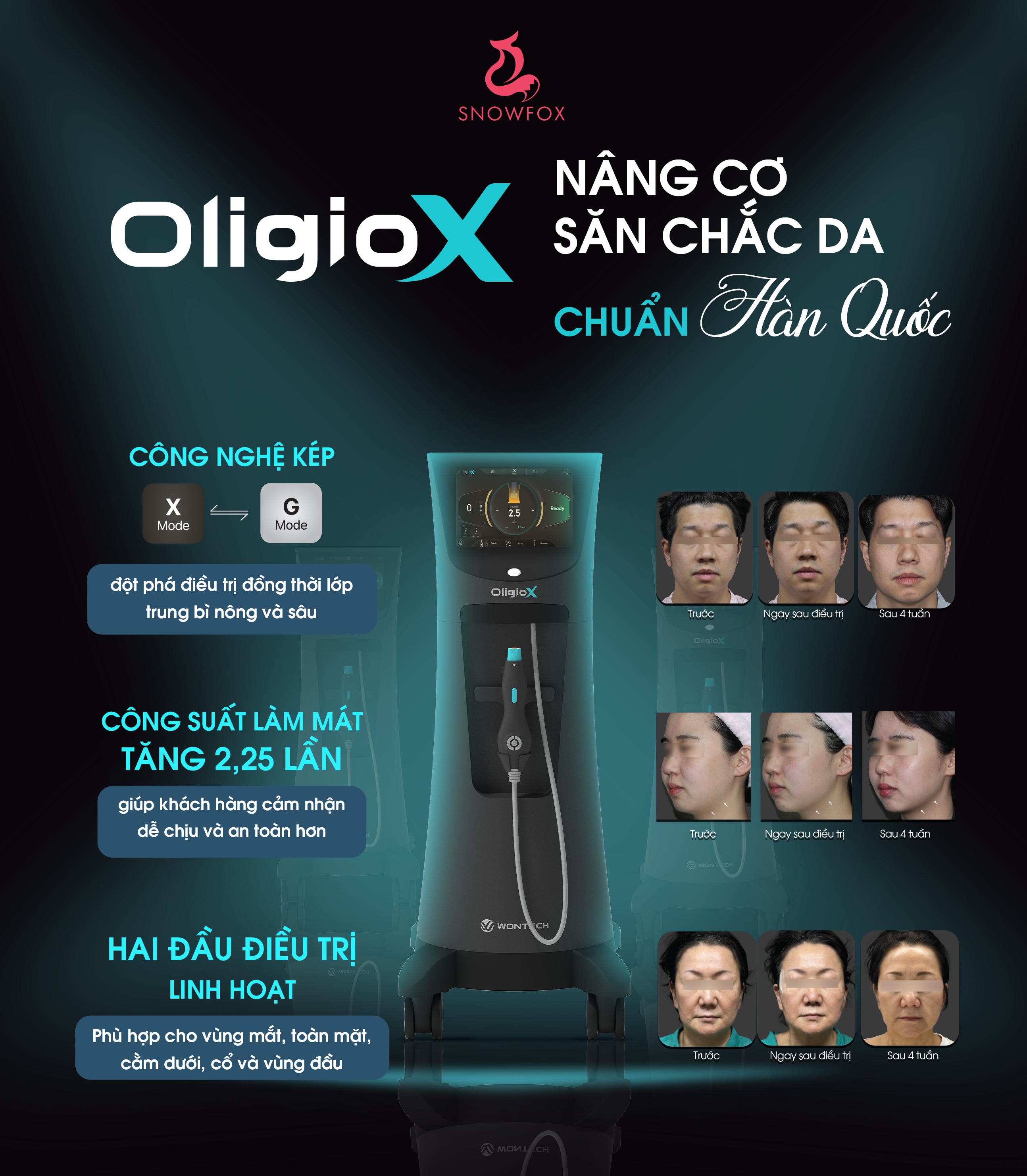 Oligio X chính là phiên bản nâng cấp mạnh mẽ nhất từ Oligio, với Dual Mode – công nghệ giúp tăng gấp đôi hiệu suất, cải thiện độ bền và mang lại kết quả điều trị rõ rệt ngay sau buổi đầu.