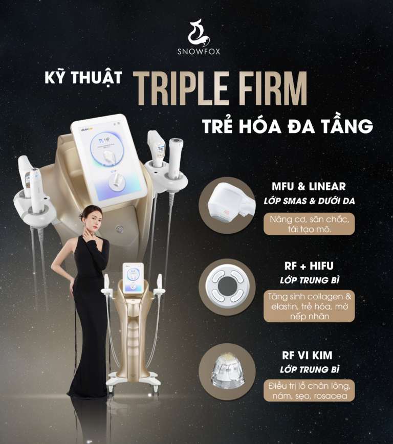 Thiết bị đầu tiên trên thế giới kết hợp công nghệ MFU và RF, mang đến giải pháp nâng cơ đa tầng hiệu quả. Công nghệ MFU tác động sâu vào lớp cơ SMAS, trong khi RF tái cấu trúc collagen ở lớp nông, giúp da săn chắc và trẻ hóa toàn diện. Sự kết hợp này tối ưu hóa kết quả và rút ngắn thời gian điều trị, không cần nghỉ dưỡng